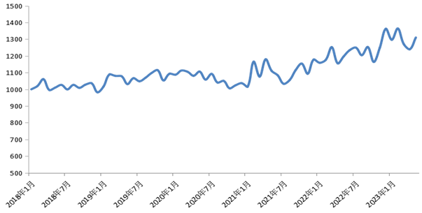 5月份,新华·中盐食用盐(商超)价格指数报1309.90点,较上期(2023年4月)上涨70.06点,涨幅5.65%;较基期(2018年1月)上涨309.90点,涨幅30.99%。