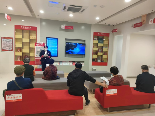 各网点积极利用线上和线下渠道进行宣传。线上渠道方面,发挥网络和自媒体的阵地辐射作用,广泛发声,进行全面宣传,提高受众面和影响力。线下渠道方面,在厅堂等侯区向客户发放金融知识宣传单页,在厅堂电视上播放防范非法集资等宣传片,在公众教育区及引导台等醒目位置摆放金融知识相关手册及单页,开展网点小沙龙及进大集等活动进行金融知识宣传。