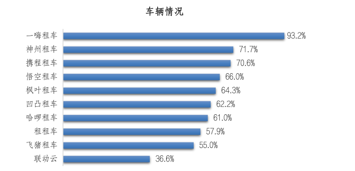 另外,有64.4%的受访者在推荐原因中更看重“车辆情况”。一嗨租车的推荐者选择该原因的比例最高,为93.2%;其次是神州租车,为71.7%;第三是携程租车,为70.6%。一嗨租车以超20个点的优势领先于其他品牌。