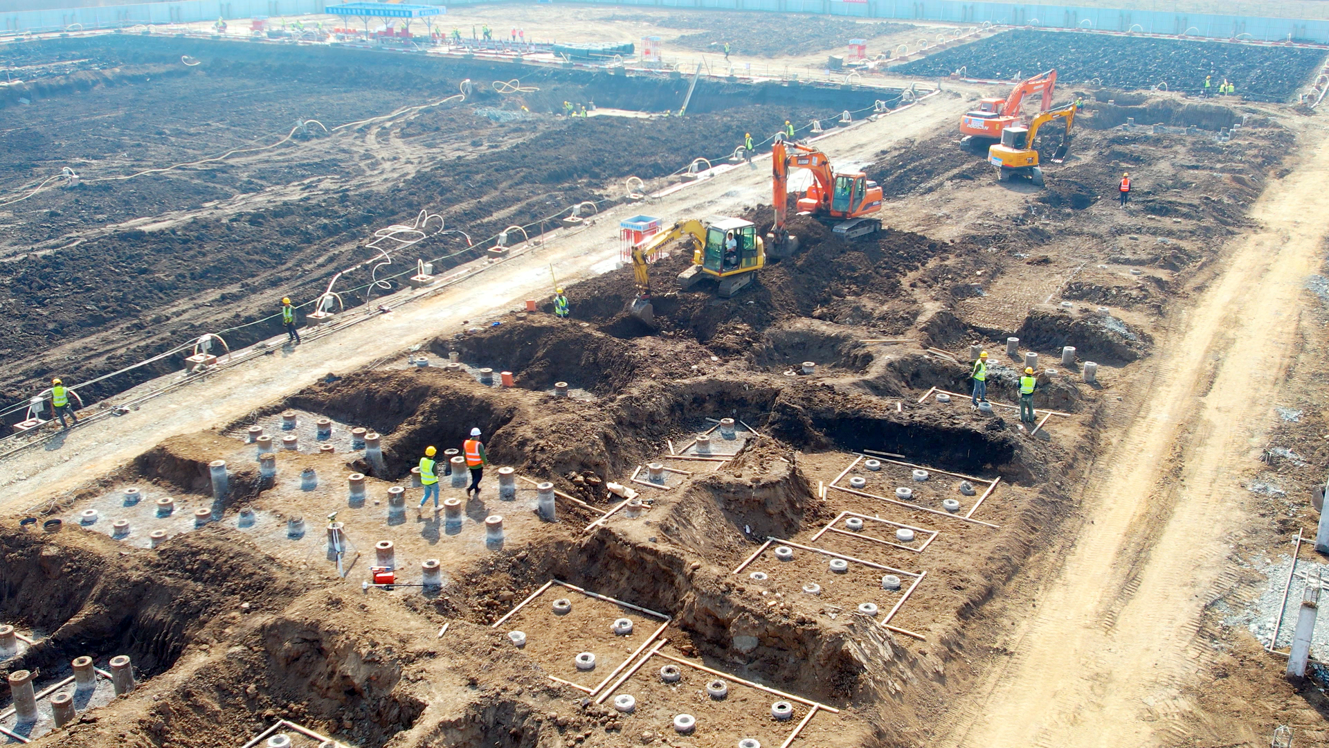 万物勃发春光好,处处皆闻奋蹄声。在长春北湖精细化工新材料产业示范园污水厂项目建设现场,工地上一派繁忙景象,机器轰鸣声不时响起,满载物料的运输车来来往往,建设工人们干劲十足。