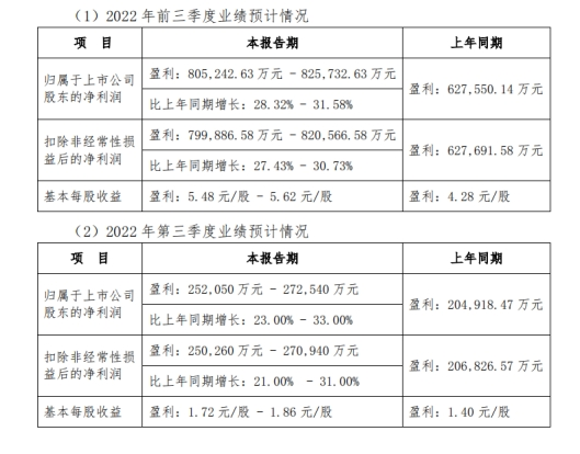 泸州老窖(证券代码:000568)14日晚间发布业绩预告,预计今年前三季度实现归属于上市公司股东的净利润为80.52亿元-82.57亿元,超过去年全年水平。