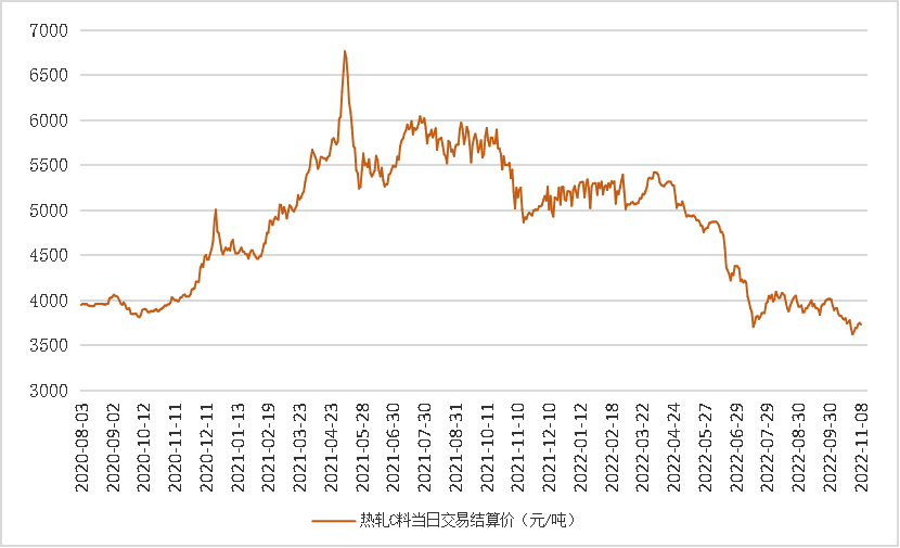 截至2022年11月8日,新华·山东港口热轧C料价格指数报3732元/吨,较前一交易日下跌17元/吨,跌幅0.45%。
