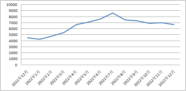 2022年12月进口保税航空煤油到岸价环比下跌3.9%