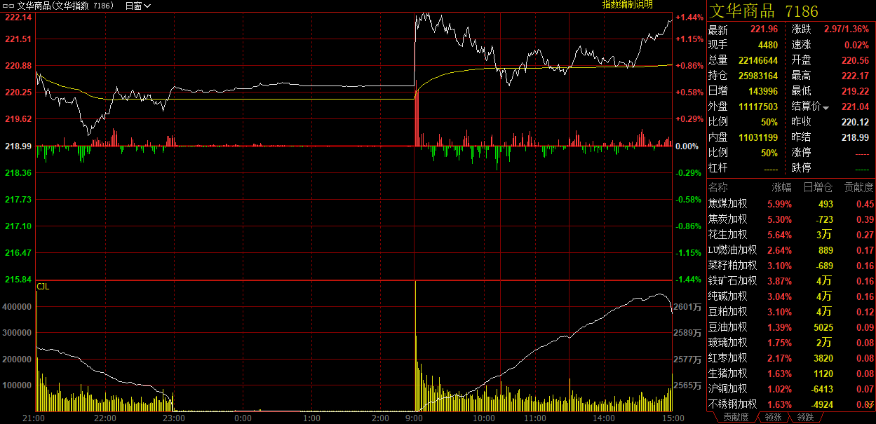 商品大面积收涨 双焦强势反弹花生增仓大涨