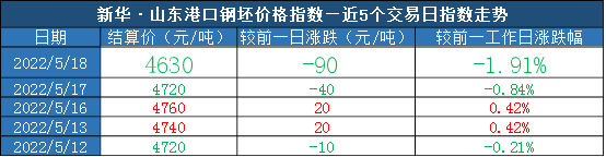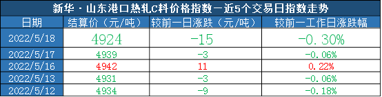 新华财经·指数|山东港口大商中心钢坯、热轧C料价格指数日报(5月18日)