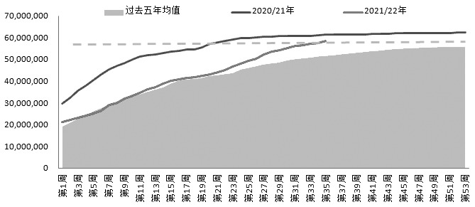 图为2021/2022年度美豆累计出口销售量