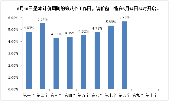 成品油:中国汽、柴油批发价格显示,6月9日中国汽、柴油批发价格上涨。全国92#汽油平均批发价格为9709元/吨,较前一日上涨64元/吨;柴油(含低凝点)平均批发价格为8909元/吨,较前一日上涨20元/吨。当日市场整体情况来看,国际油价8日显著上涨,消息面指引偏强,国内汽、柴油批发价格上行。不过,高价下业者入市采购有限,市场购销气氛淡稳。