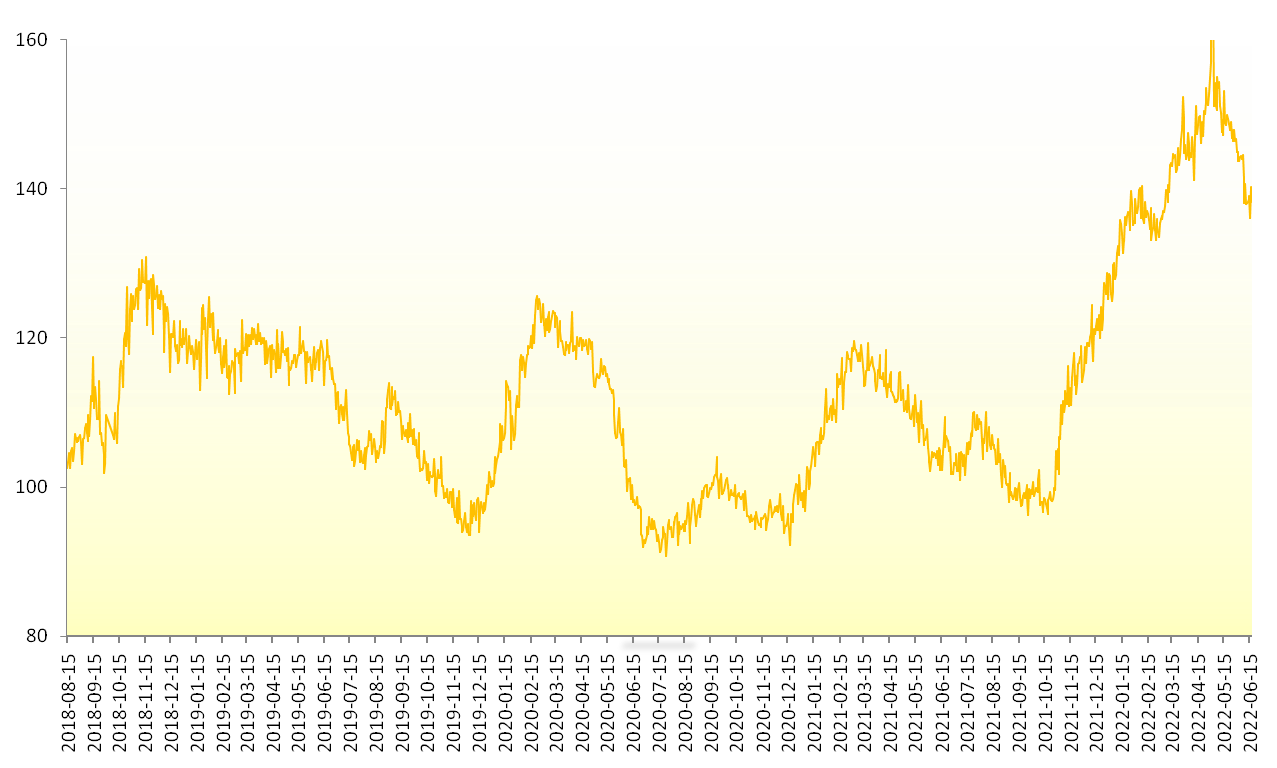 2022年6月26日,新华-香蕉销地批发价格指数报138.24点,较6月19日上涨0.26点,涨幅0.19%;较基期上涨38.24点,涨幅38.24%。