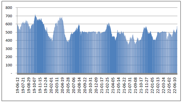 图表:秦皇岛港港口煤炭库存(单位:万吨)