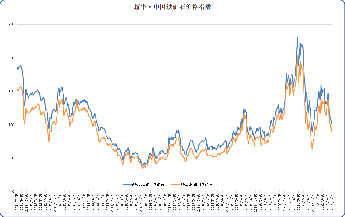 新华·中国铁矿石价格指数显示,7月19日至7月25日间,进口铁矿石价格小幅上涨。