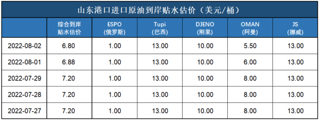 新华财经·指数|山东港口进口原油到岸价格指数日报(8月3日)