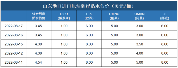 新华财经·指数|山东港口进口原油到岸价格指数日报(8月18日)