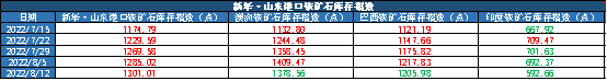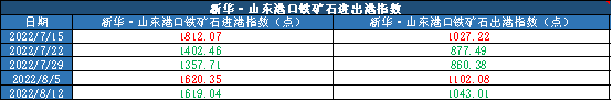 新华财经·指数|新华·山东港口铁矿石系列指数周报(2022.8.6-2022.8.12)