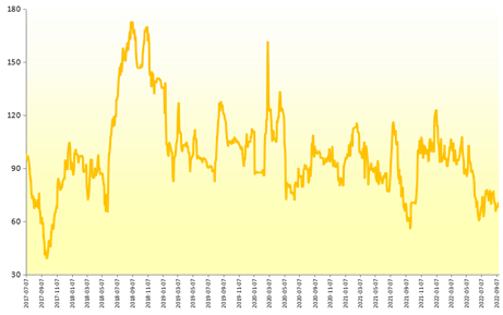 其中广西、海南、云南、福建、广东产区指数分别报124.44点、100.88点、46.51点、142.86点、121.88点。本期(2022.9.14-9.16),海南产区统货均价约为1.32元/斤,较前一期(2022.9.5-9.9)持平;广东产区统货均价约为1.25元/斤,较前一期(2022.9.5-9.9)上涨0.14元/斤,涨幅12.50%;广西产区统货均价约为1.63元/斤,较前一期(2022.9.5-9.9)下跌0.03元/斤,跌幅1.81%。