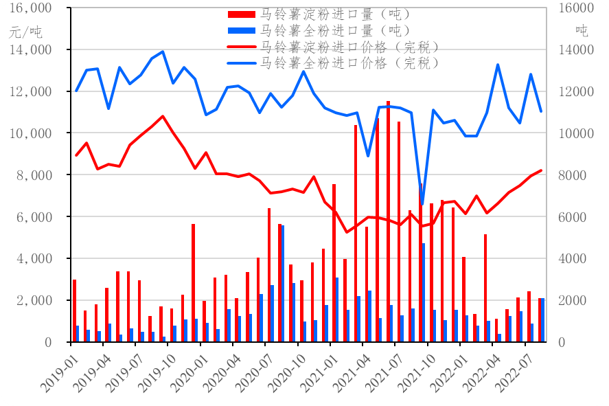 同期,我国马铃薯淀粉进口量价稳步提升,马铃薯全粉进口量大幅增加且价格下跌。其中从荷兰进口马铃薯全粉上升为主导因素。具体来看,8月我国进口马铃薯淀粉均价为8219.61元/吨(完税价),较7月上涨3.33%。同期,马铃薯全粉进口量2094.67吨,较7月上涨141.88%;进口均价为11036.51元/吨(完税价),较7月下跌13.89%。
