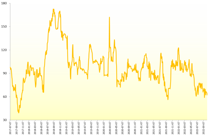 新华财经北京10月18日电(李伯罧、薛志烜)2022年10月14日,新华-中国香蕉产地价格指数报62.32点,较9月30日下跌0.07点,跌幅0.11%;较基期下跌37.68点,跌幅37.68%。