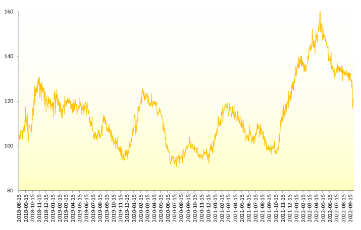 2022年10月16日,新华-香蕉销地批发价格指数报120.67点,较10月2日下跌6.07点,跌幅4.79%;较基期上涨20.67点,涨幅20.67%。