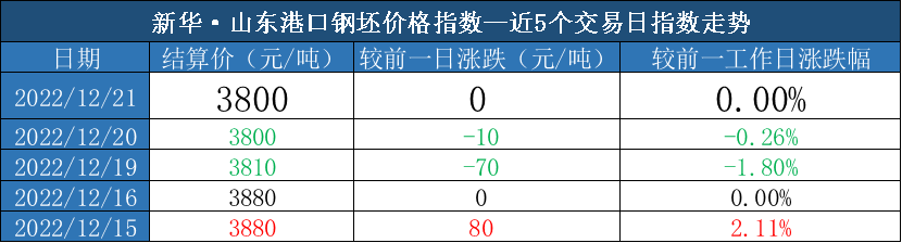 新华财经·指数|12月21日山东港口大商中心钢坯价格持平、热轧C料价格微幅上涨