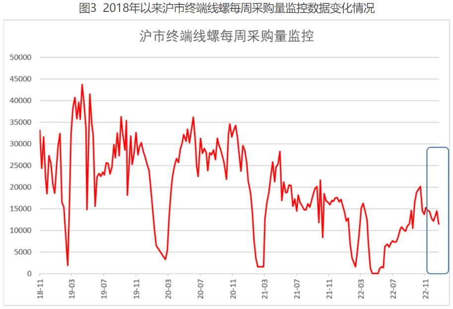 12月,随着气温进一步下降以及新冠病毒感染疫情因素的影响,钢材需求继续收缩。需求收紧,一是房地产保持下行态势。1-11月份,房屋新开工面积下降38.9%,持续处于相对较低水平。11月房地产开发景气指数为94.42,继续创年内新低。此外,从消费端来看,终端购房需求的疲软,同样使得房地产开工动力不足,因此短期内房地产市场仍难给予大宗商品市场有力支撑。二是由于短期内感染人数较快增加以及春节临近导致工地施工人数减少等原因,部分基建工地有提前停工预期。但是市场需求也有积极因素,一是钢材冬储正在进行,对需求端有一定支撑。二是宏观预期向好,市场对未来经济恢复相对乐观,当前来看,近期随着各地落实疫情防控政策优化,以及一系列房地产“托”“举”政策的出台,市场预期有所提振。因此市场需求整体呈现降幅收窄势头,12月份新订单指数为38.9%,较上月上升4.4个百分点。终端市场变化也反映出当前终端用钢在缩减,从监测的沪市终端线螺采购数据来看,12月份上海终端采购环比下降9.8%。