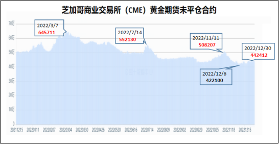 另从高频数据来看,芝加哥商业交易所(CME)黄金期货的未平仓合约截至12月30日约为442412手,在12月首周降至422100手之后,亦出现向上增加迹象,增加幅度达2万余手。
