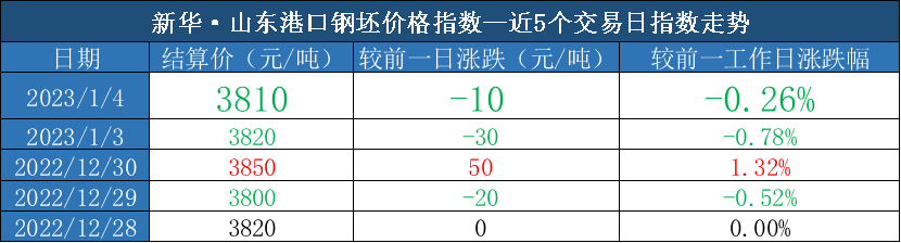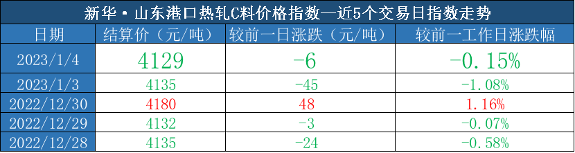 新华财经·指数|1月4日山东港口大商中心钢坯、热轧C料价格皆微幅下行