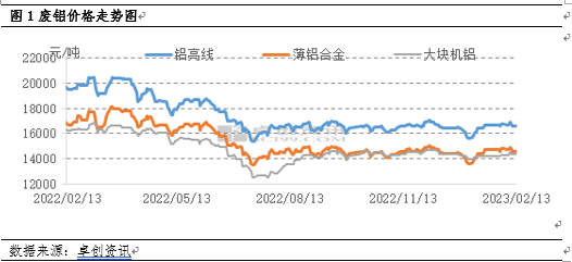 2023年春节后废铝价格涨跌有限,成交氛围偏弱,供应偏紧使得价格下跌意愿减弱,精废差逐渐缩小。预计2月份废铝价格宽幅震荡,下半年价格有望走向高位。