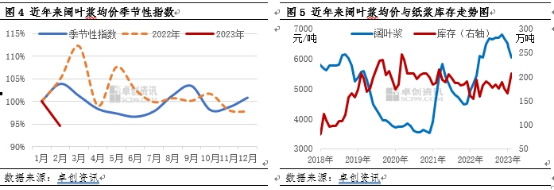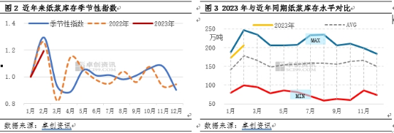 从供应端来看,国内外新增产能释放速度加快,一季度智利Arauco、UPM阔叶浆新增产能存在抵港或投产预期。并且从全球数据来看,欧洲港口库存自2022年10月份开始一直处于130万吨以上水平,同比增加明显。Europulp最新数据显示,1月份欧洲港口库存151.43万吨,环比增加13.75%,同比增加36.06%。阔叶浆新产能的释放及欧洲库存量的增加,间接增加中国市场后期的供应压力,浆价承压下行。