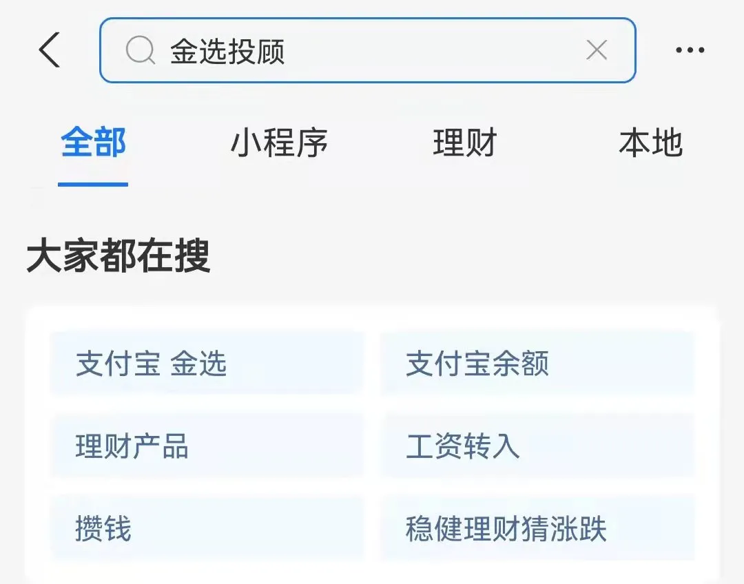目前在支付宝APP上搜索“金选投顾”,已找不到相关内容。但之前购买“金选投顾”的投资者仍然可以查看到“金选投顾”组合,也依旧可以继续购买。