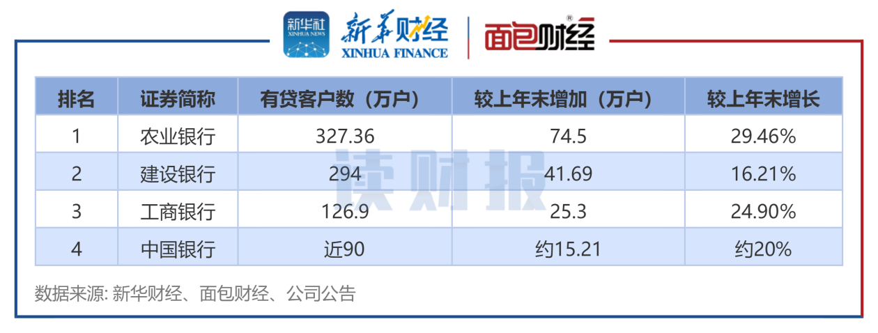 有贷客户数:农行超越建行位居榜首