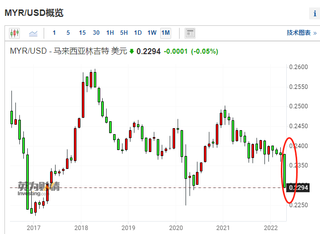 图为马来西亚林吉特月K线 来源:investing.com