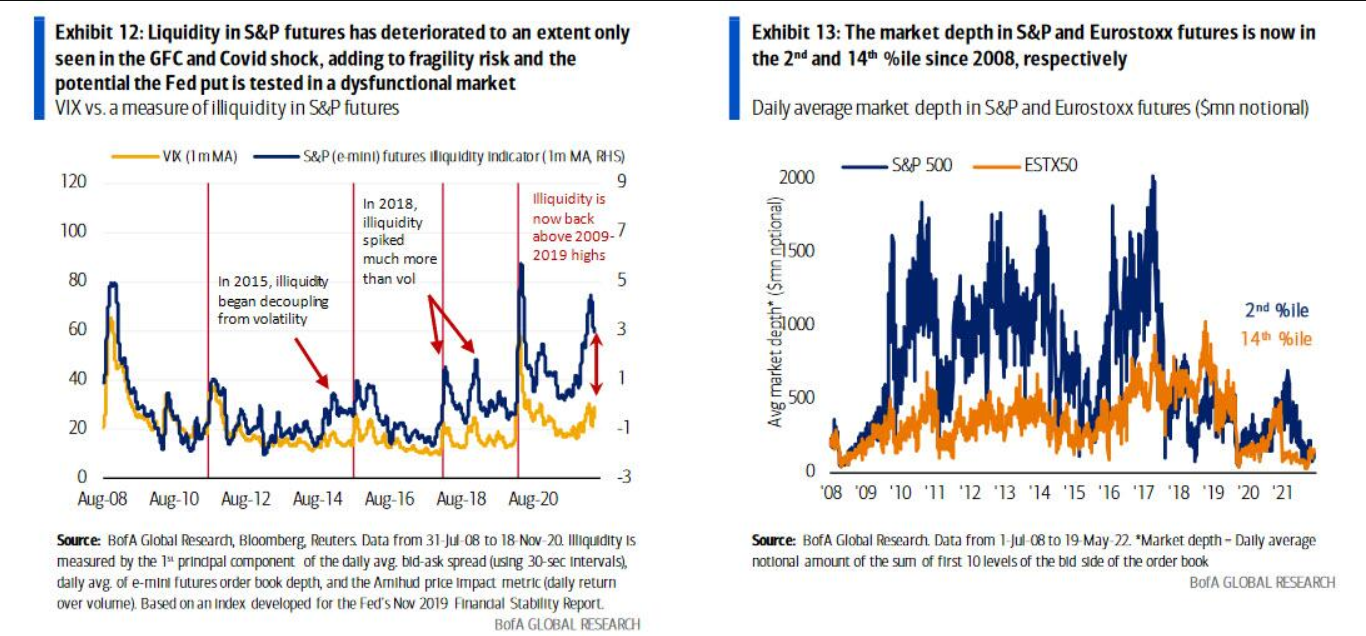那么现在市场恐慌足够多了吗?还不太够,但越来越近了。作为脆弱性风险的一个关键特征,股指期货的流动性低到接近创纪录水平。