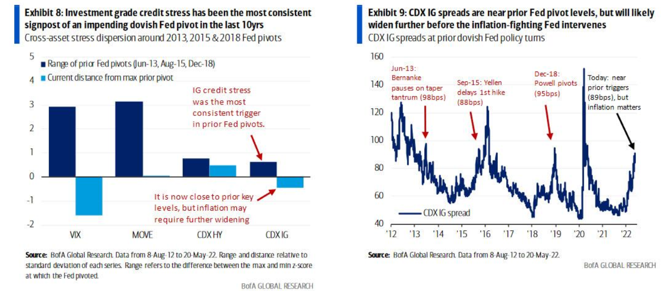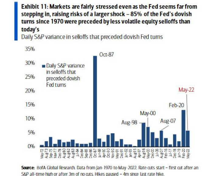 尽管到目前为止,美联储仍旧是鹰派当道,但美国银行认为,市场将继续试探美联储的看跌期权。美国银行警告说,需要更多的市场恐慌,才会诱发美联储恐慌。