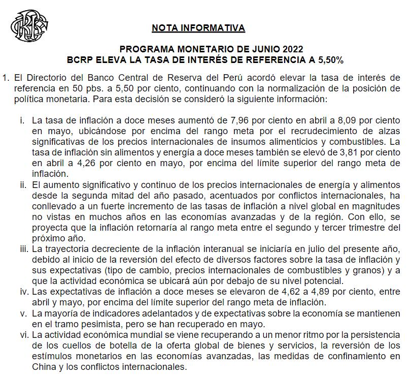 新华财经北京6月10日电 秘鲁央行将政策利率从5%提高至5.5%,符合预期。利率已经升至2009年以来的最高水平。秘鲁央行加息50个基点以遏制1998年以来最严重的通货膨胀,这已经是该国央行连续第11次加息。