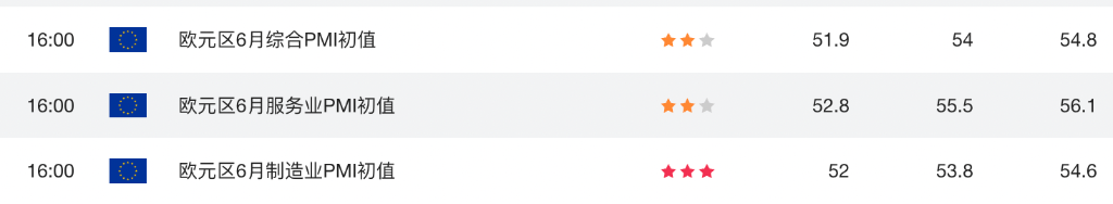 欧盟统计局周四公布的数据显示,6月份欧元区综合PMI初值降至51.9,为16个月来的低点,远低于市场普遍预期的54和5月份的54.8。