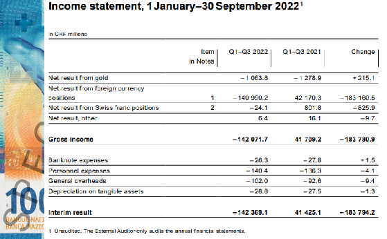 2022年前三季度,瑞士央行共亏损1400亿瑞郎,第四季度的表现也未出现逆转。