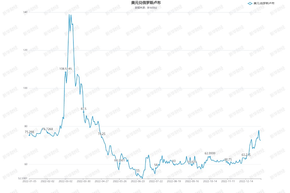 俄罗斯卢布进入12月之后出现疲软态势,因市场担心西方国家对俄罗斯原油的制裁,以及G7设定的价格上限可能会打击该国未来石油的出口收入。而在此前,俄罗斯卢布一直是兑美元最强势的货币。
