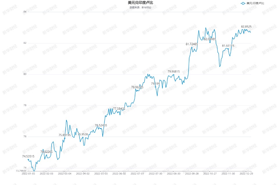 印度卢比是2022年表现最差的亚洲货币之一。印度卢比兑美元年内贬值超过10%,并在10月底一度跌至83.28的记录低点。在之后的一段时间里,美元走软,大多非美货币兑美元都出现了不同程度的反弹,但是印度卢比短暂反弹后重新回到了贬值通道。在与不断走强的美元作斗争的过程中,就连印度央行也不得不承认,它在控制印度卢比下跌方面几乎无能为力。