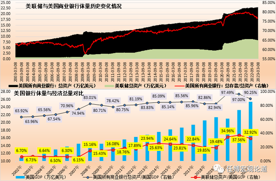 (一)上面的分析显示,虽然美国是直接融资体系为主,但银行业在美国仍然处于非常重要的地位,美国银行业的体量已经和其经济总量基本相当,且是美联储体量的3倍左右。