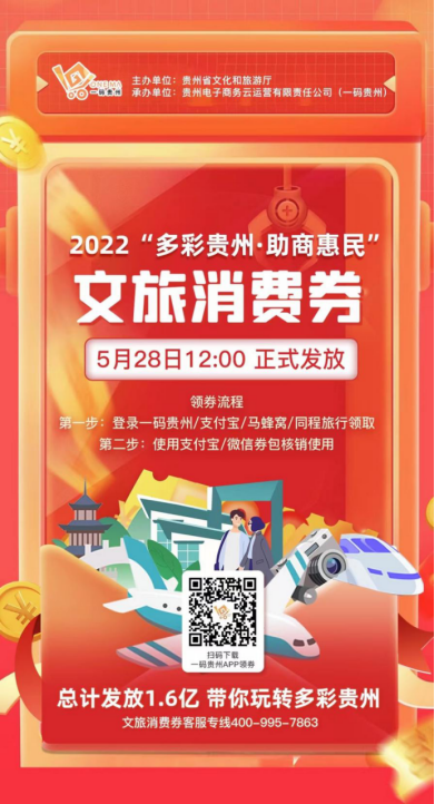为提振文旅消费,5月28日起,贵州将面向省内外游客分批次发放总计1.6亿元的文旅消费券。本次文旅消费券额度1.6亿,由省级资金安排,发放时间为2022年5月底至12月中旬,预计共发放10批次。