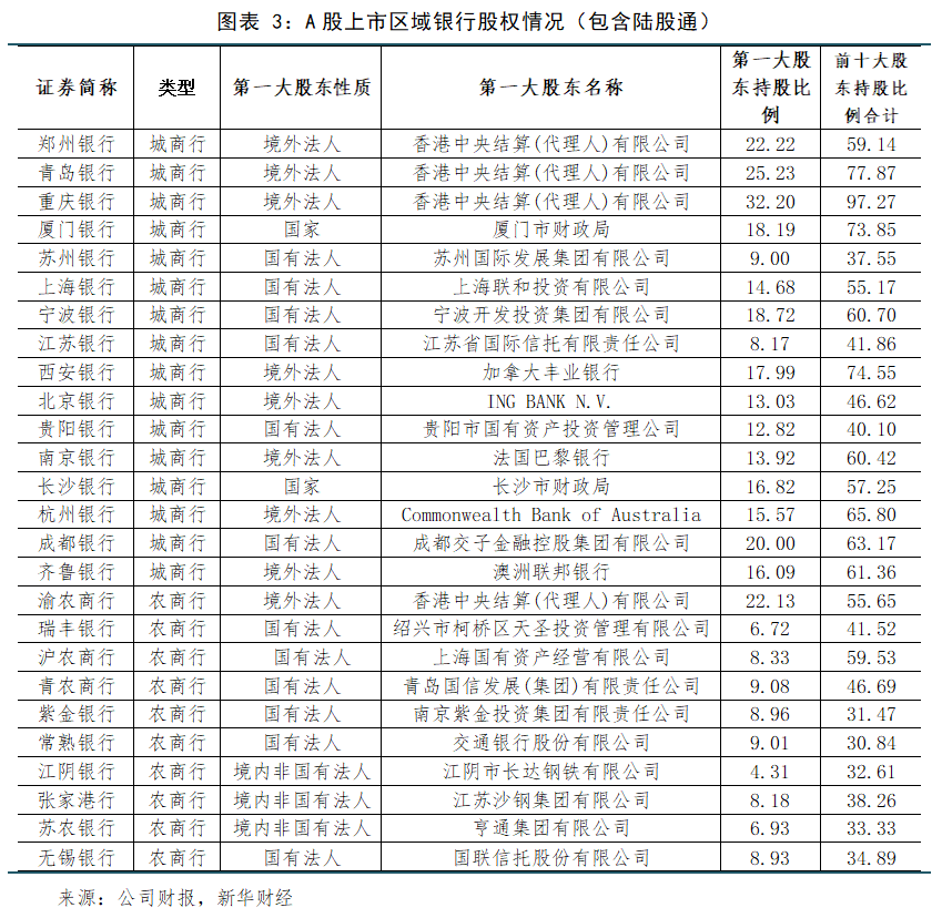 从股权集中度角度来看,中小银行的股权属于分散型。