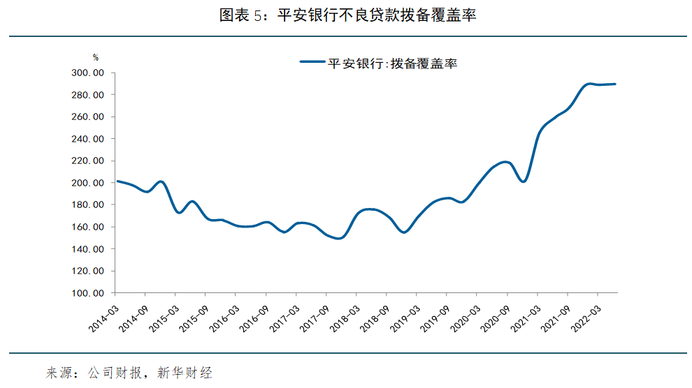 保持充足风险抵补能力。上半年,平安银行继续保持较大的资产减值损失计提力度,计提的发放贷款和垫款信用减值损失298.31亿元。2022年6月末,贷款减值准备余额950.21亿元,较上年末增长5.3%;风险抵补能力继续保持较好水平,拨备覆盖率290.06%,较上年末上升1.64个百分点;逾期60天以上贷款拨备覆盖率327.22%,较上年末下降11.00个百分点;逾期90天以上贷款拨备覆盖率393.54%,较上年末下降3.86个百分点。
