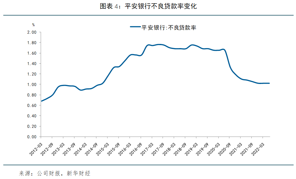 从成本端来看,信用减值损失同比增长1.5%。上半年,平安银行业务及管理费243.49亿元,同比增长5.1%,低于去年同期8.33%的增速;成本收入比26.46%,同比下降0.89个百分点。此外,计提信用及其他资产减值损失388.45亿元,同比增长1.5%。一方面,加大资产核销及拨备计提,并针对宏观经济下行、部分地区疫情反复等情况计提管理层叠加拨备,导致部分金融资产项目信用减值损失同比增加;另一方面,因上半年收回及化解大额非贷款问题授信,导致计提的债权投资信用减值损失同比减少。