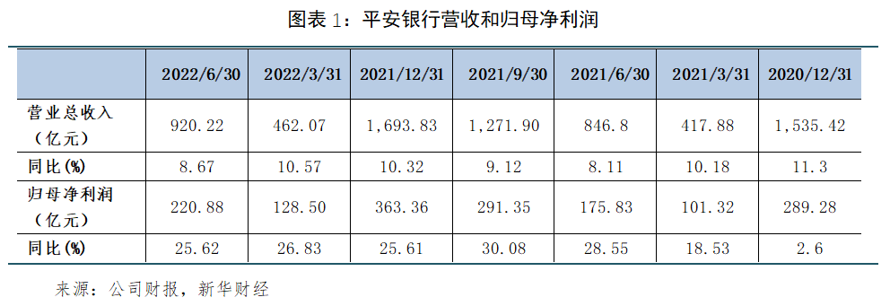 上半年,平安银行实现营业收入920.22亿元,同比增长8.67%,实现归母净利润220.88亿元,同比增长25.62%。