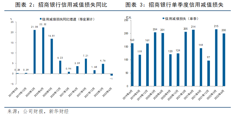 计提信用减值损失规模降低。上半年,招商银行信用减值损失414.77亿元,同比减少1.00%,出现近年来少见的负增长。招商银行信用减值损失上一次负增长还是出现在2018年上半年。单独看2022年第二季度,信用减值损失为199.54亿元,同比减少6.54%。关于信用减值损失的具体内容,财报披露:贷款和垫款信用减值损失227.95亿元,同比增加83.38亿元,主要是报告期内对部分房地产客户增提信用损失准备;应收同业和其他金融机构款项信用减值损失-25.94亿元,同比减少70.13亿元;表外预期信用减值损失82.50亿元,同比减少54.12亿元;其他信用减值损失33.22亿元,同比增加30.57亿元。