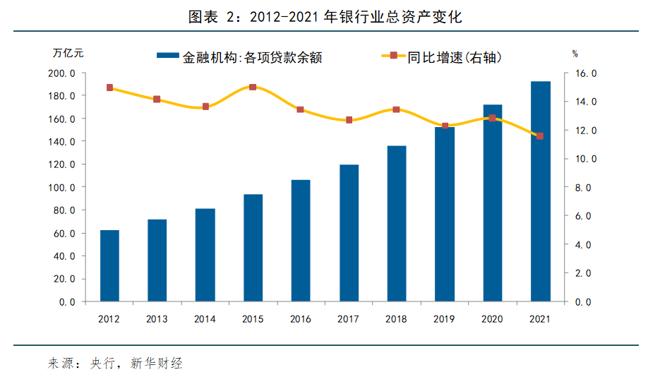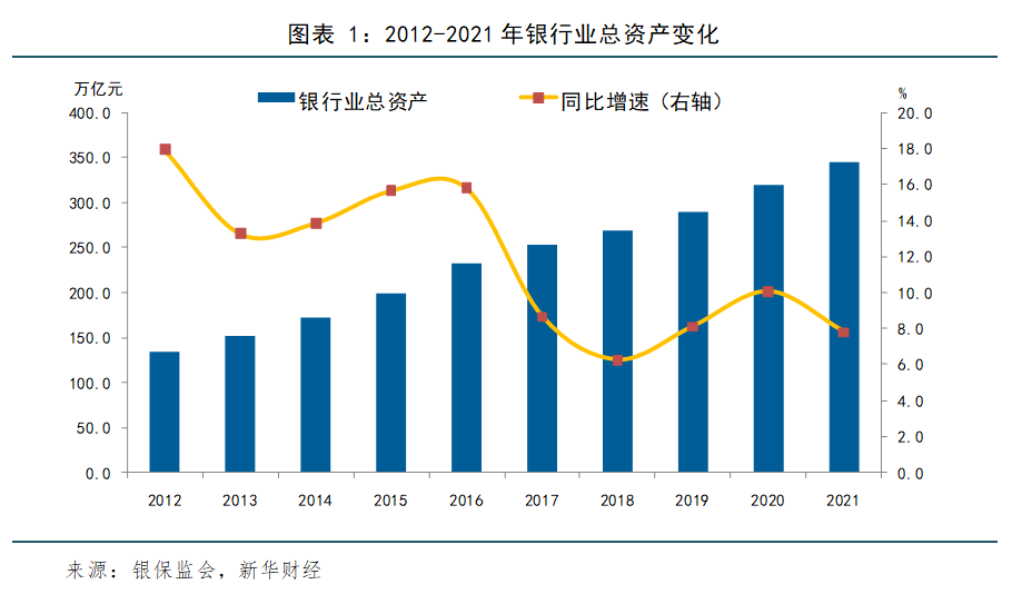 新华财经北京9月23日电(分析师张威)过去十年,我国银行业进入高质量发展阶段。2012年以来,我国银行业总资产规模从快速扩张转为稳健增长,截至2021年底,银行业总资产达到344.76万亿元,已经成长为全球最大的银行市场。在资产规模“降速换挡”的同时,银行业积极回归本源主业,以贷款增速超过总资产增速且占比显著提升为标志,2017年以来银行业资产结构迎来持续性改善。银行信贷结构深刻调整,对实体经济重点领域和薄弱环节的信贷投放力度加大,服务实体经济质效不断提升。