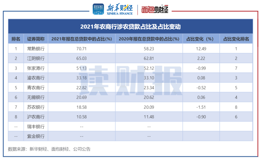 涉农贷款:渝农、常熟、沪农余额居前三,无锡、苏农垫底