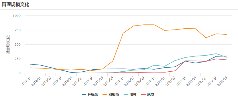 据新华财经统计,以丘栋荣、刘格菘、陆彬、施成四位基金经理做对比,三季度仅有丘栋荣在管基金规模微升,其余均小幅下调。从代表作基金持仓动向来看,丘栋荣大幅调仓,川仪股份新晋成为中庚价值灵动第一重仓股;陆彬整体坚守新能源,新进重仓四维图新、恩捷股份;同样坚守新能源赛道的还有国投瑞银施成,当季调仓动作不明显,用天赐材料替换西藏矿业;而刘格菘青睐光伏企业,晶澳科技、隆基绿能、阳光电源为重仓前三名。