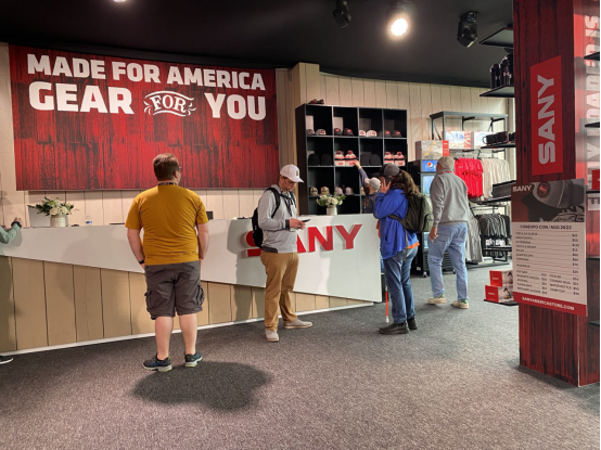 三一美国的展位今年邀请艺人现场持续演唱乡村音乐等,在临时搭建的展馆内还出售三一定制的衣服、鞋帽等,三一还为来访的客户免费提供较为丰盛的食品,人们同时有机会深入体验三一的产品和文化。