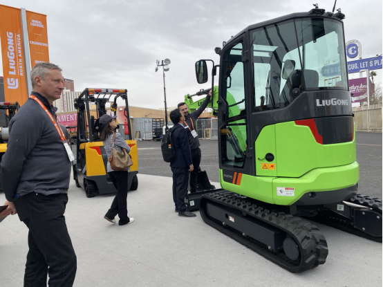 徐工、柳工和三一重工等中国企业在此次展会上推出了纯电动产品。柳工宣布成功向美国市场售出电动产品,较为充分体现了中国在电动工程机械应用上的领先地位。不同的涂装使得电动产品显得更为与众不同,不少人围绕这类产品进行仔细研究和交流。