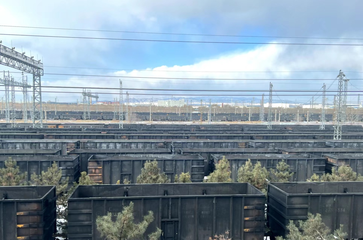 在大同湖东站的运煤专列。新华社记者 张磊 摄